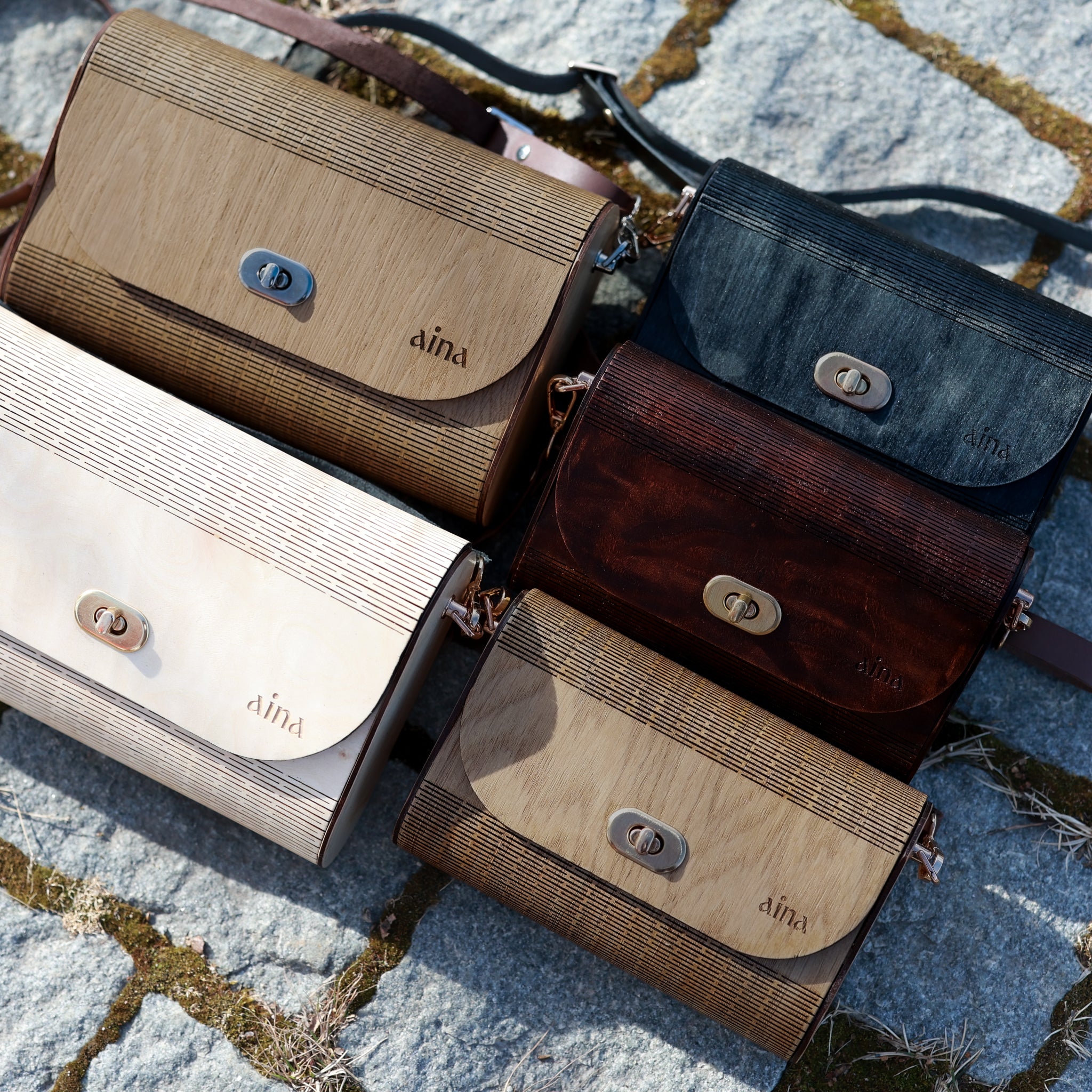 Aina Design valmistaa uniikkeja laukkuja, koruja ja sisustustuotteita suomalaisena käsityönä. Jokainen tuote syntyy kotimaisista materiaaleista – koivusta, loimukoivusta, tammesta, poron mokkanahasta sekä muista kotimaisista materiaaleista – luonnon inspiroimana. Yksilöllinen muotoilu, laadukkaat materiaalit ja rakkaus suomalaiseen luontoon näkyvät jokaisessa yksityiskohdassa.
