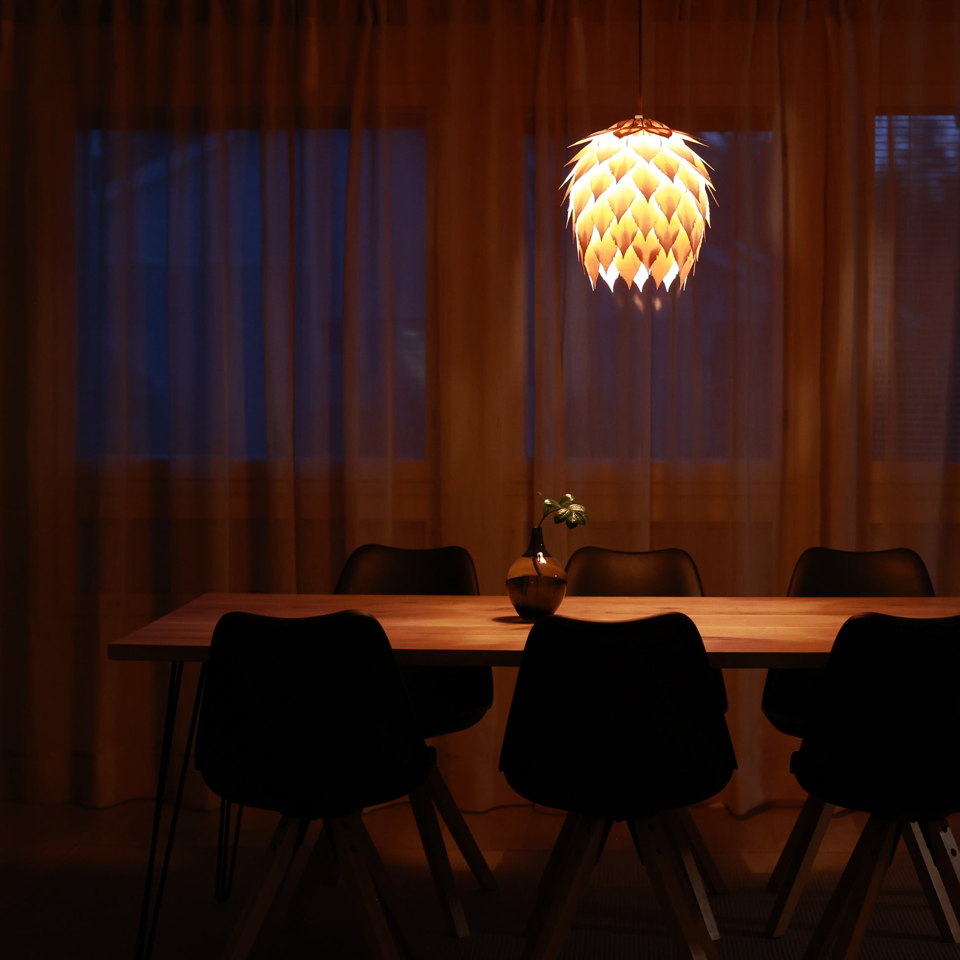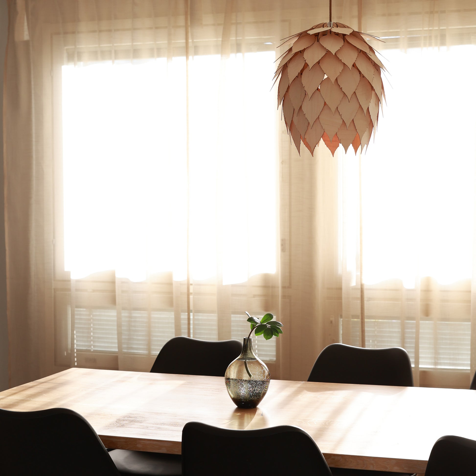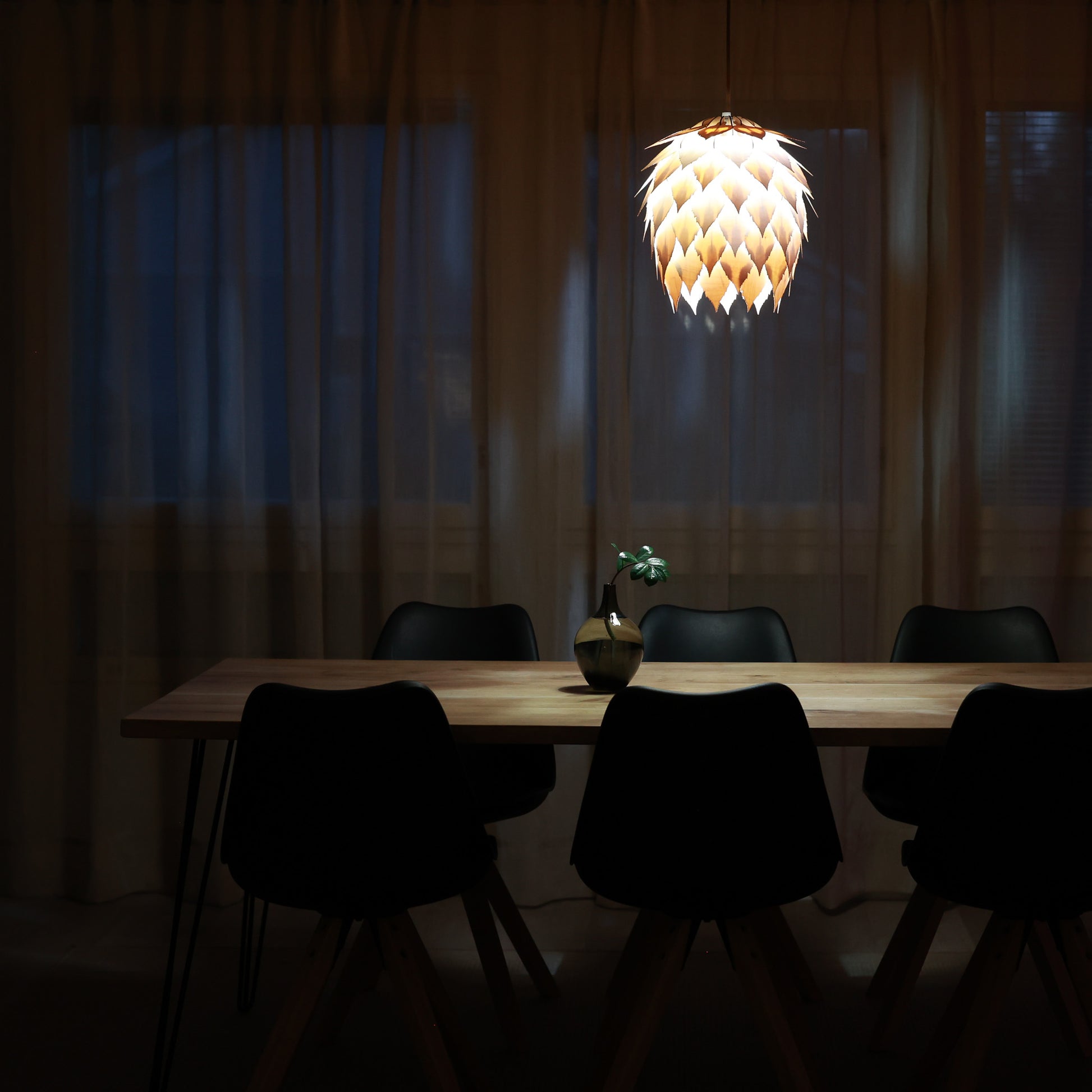 Tämä kaunis valaisin on saanut inspiraationsa Suomen kansallispuusta rauduskoivusta, jonka lehdet muodostavat valaisimen ulkomuodon. Valo pääsee kauniisti loistamaan lehtien välistä tuoden tilaan pehmeää hajavaloa.