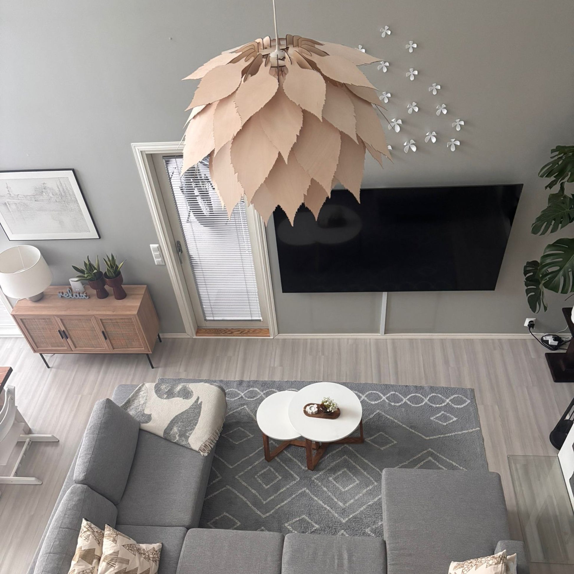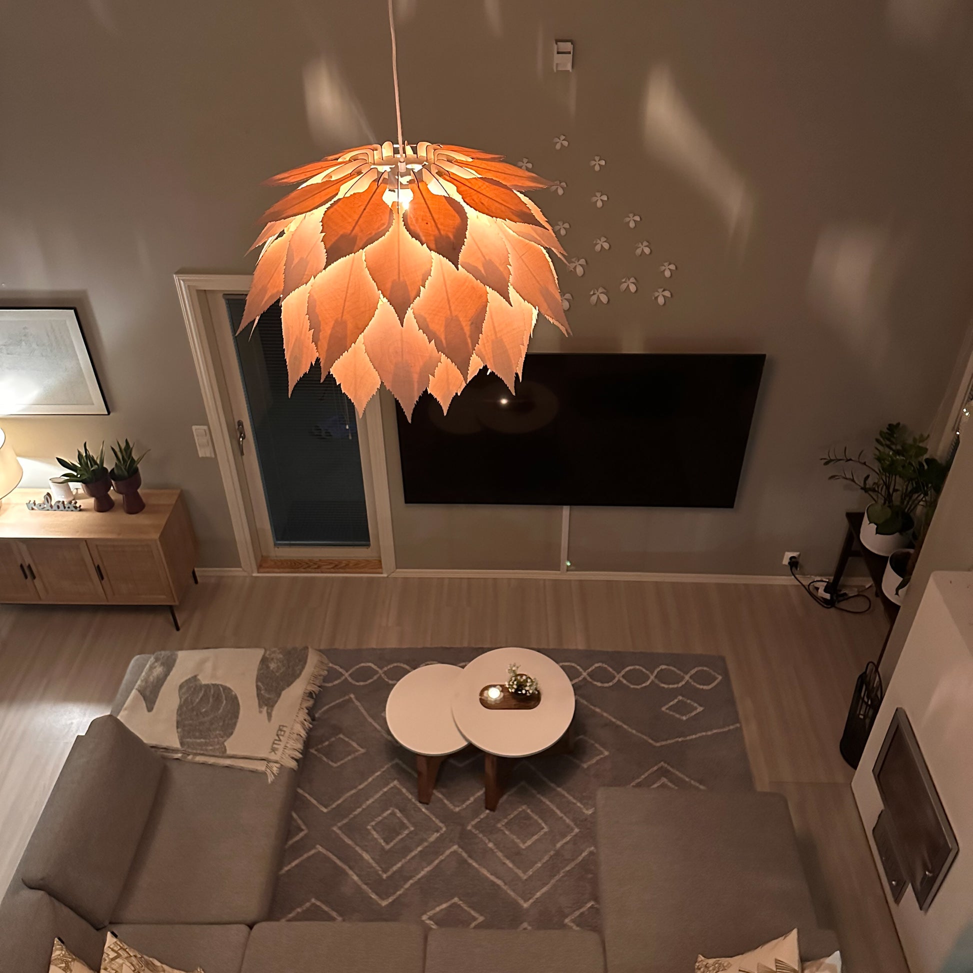 Tämä kaunis valaisin on saanut inspiraationsa Suomen kansallispuusta rauduskoivusta, jonka lehdet muodostavat valaisimen ulkomuodon. Valo pääsee kauniisti loistamaan lehtien välistä tuoden tilaan pehmeää hajavaloa.