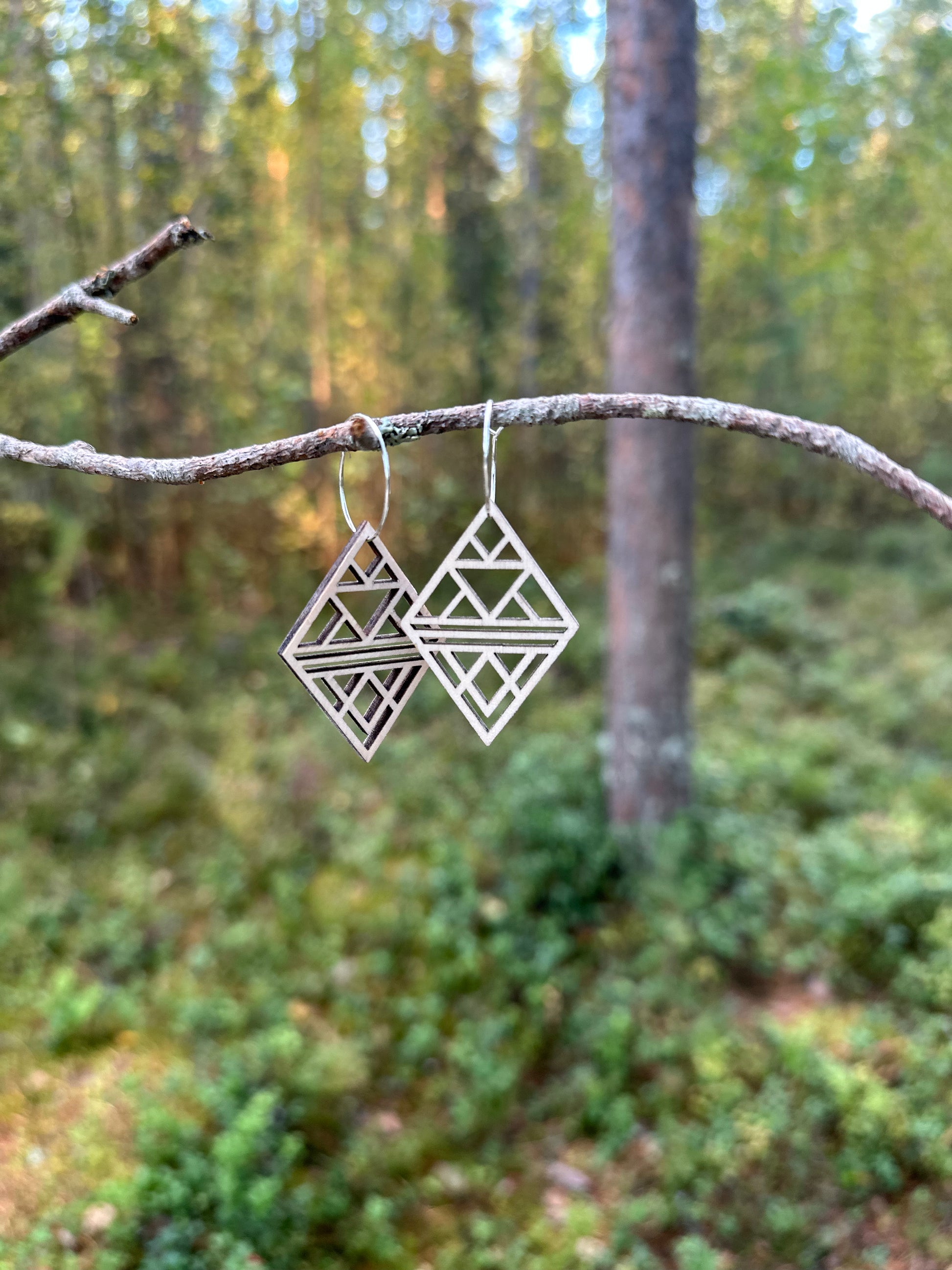 Valmistettu suomalaisesta koivusta. Nikkelitöntä korumetallia.