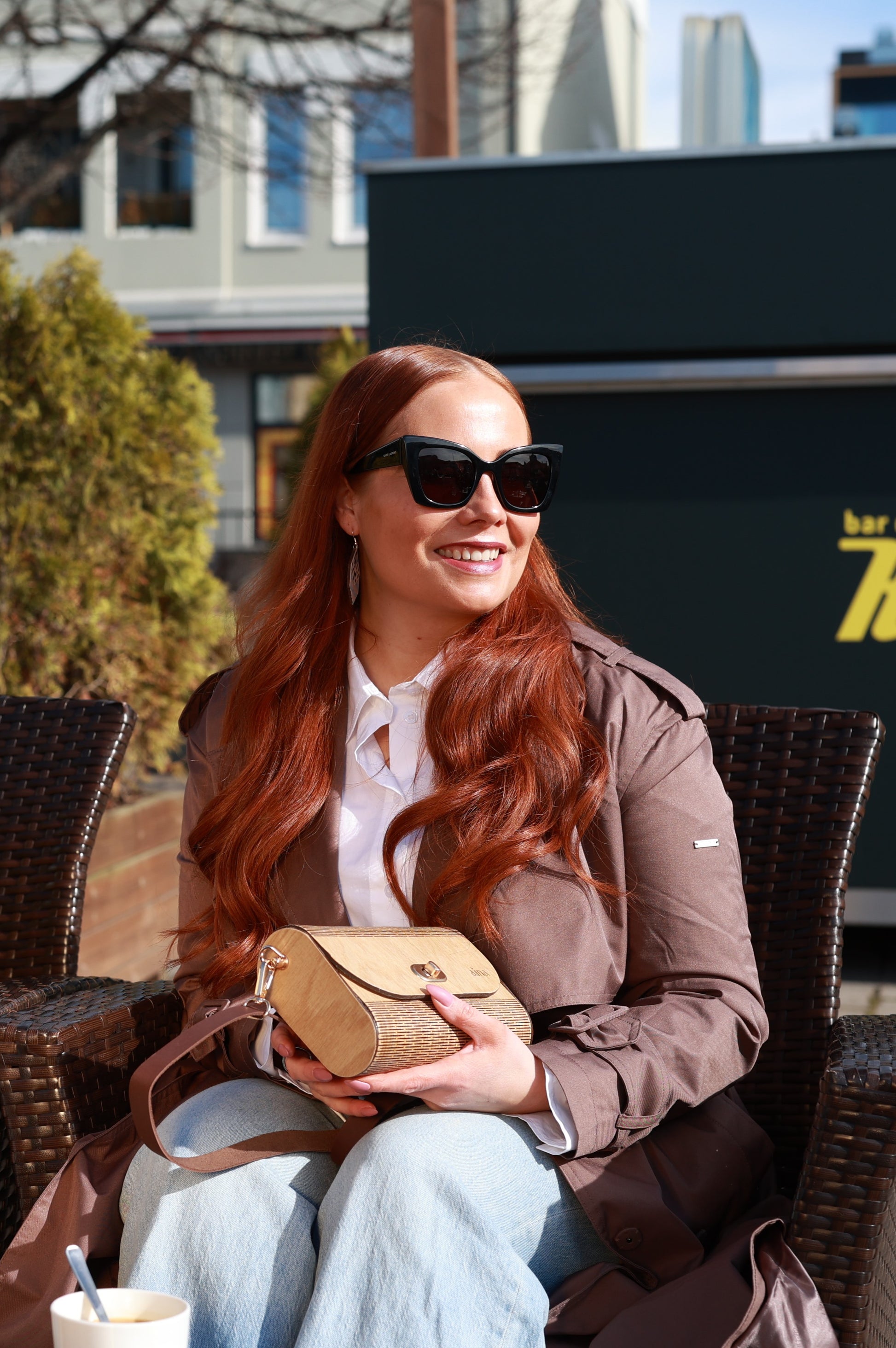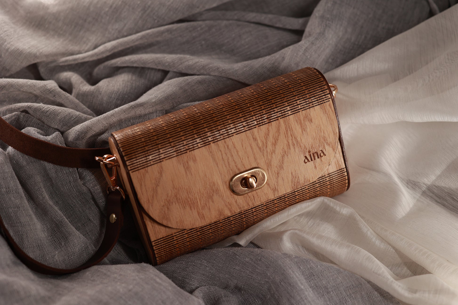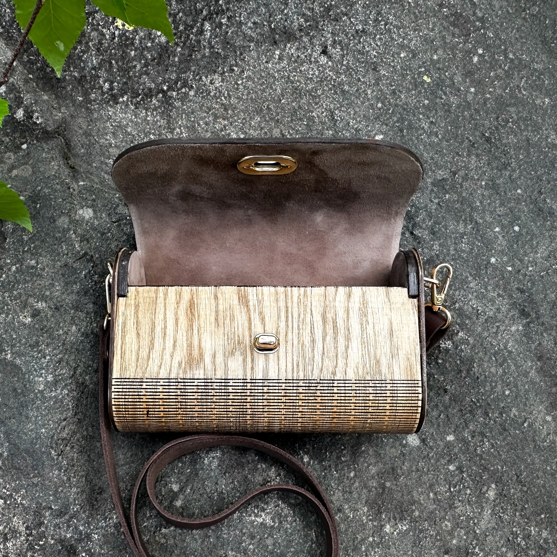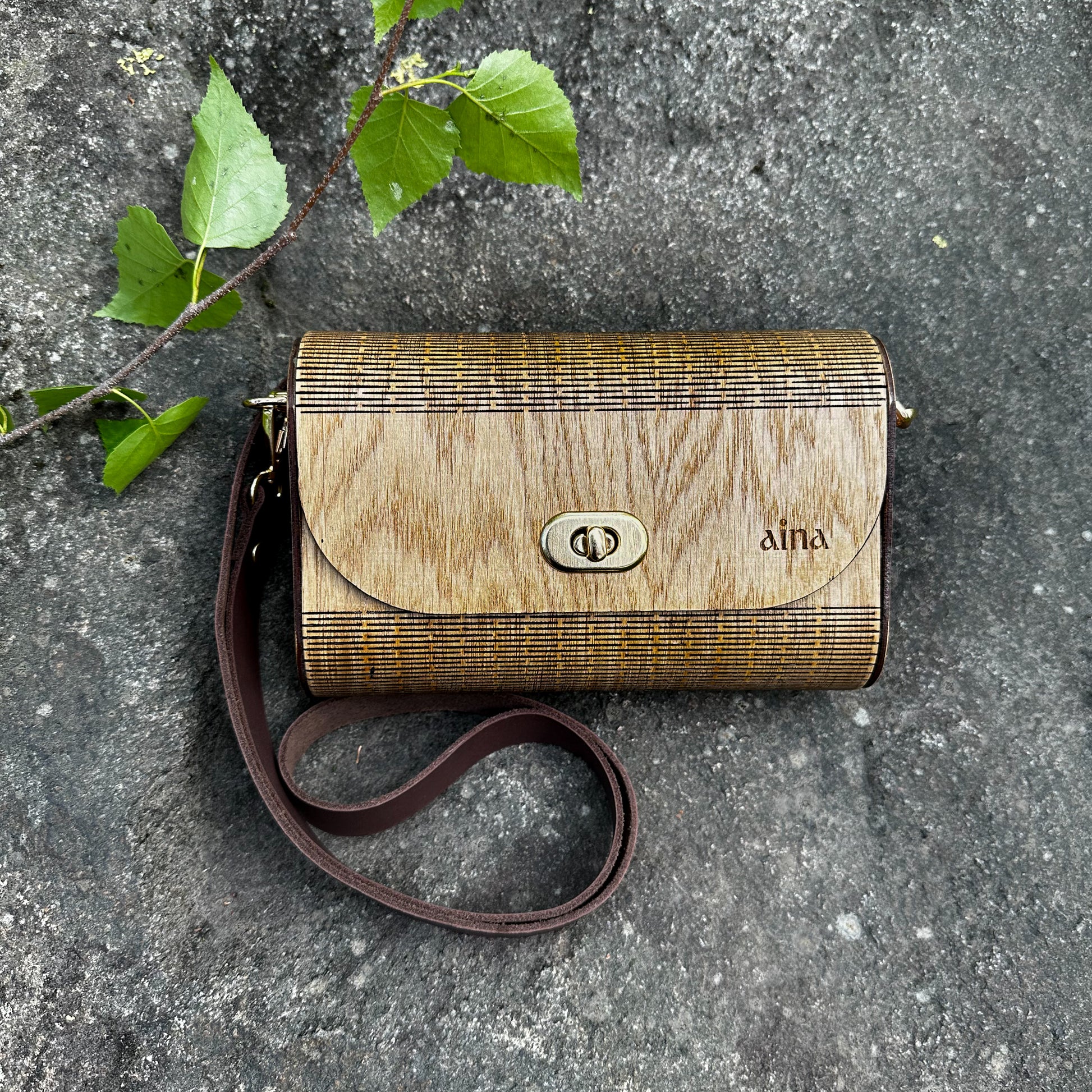 Aina Design Oak -laukku hurmaa lämpimällä, luonnollisella tammensävyllään ja hienovaraisilla yksityiskohdillaan. Tämä kaunis laukku on valmistettu aidosta tammipuusta, joka tuo pintaan eläväisen kuvioinnin ja ainutlaatuisen luonteen. Sisäpuolen pehmeä poron mokkanahka lisää ylellisyyttä, ja säädettävä hihna tekee laukusta käytännöllisen moniin tilanteisiin. Oak on täydellinen valinta, kun haluat yhdistää tyylikkyyden ja luonnonmateriaalien aitouden.